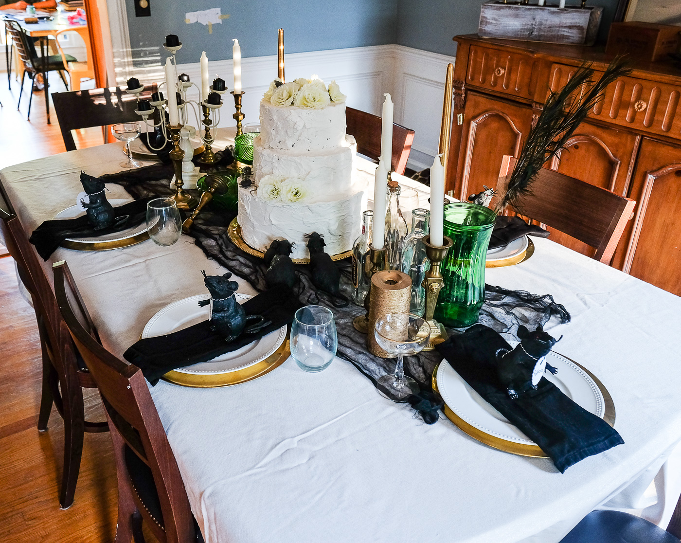 halloween2017small-4 Published October 22, 2017 at 1400 × 1116 in DIY Dollar Store Rat Place Card Holders and a Halloween Tablescape (plus a bit more Halloween)